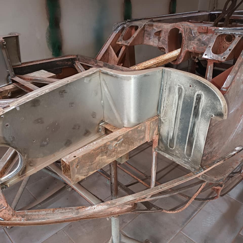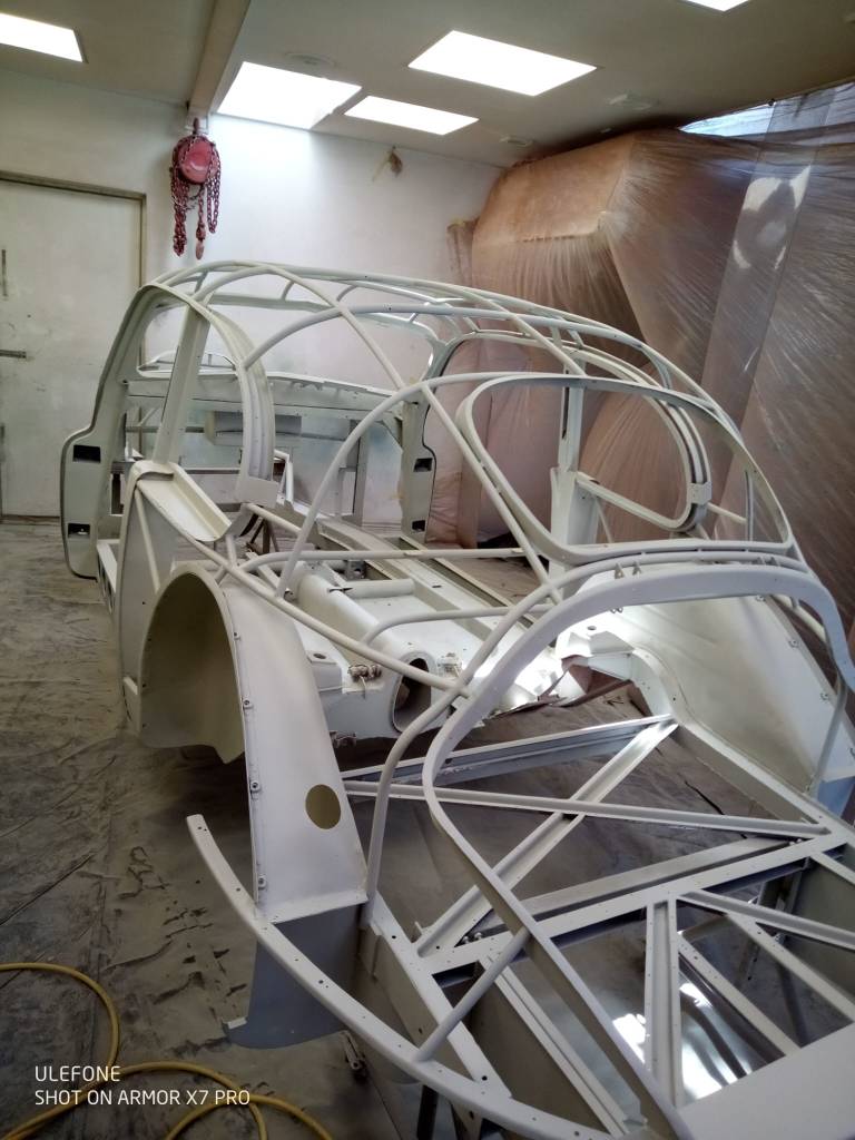 Bought as a parts car and box of bits, we’ve been gradually collecting all the pieces together. Bodywork is drawing to a close, approaching final paint before the real challenge – putting it all back together again.